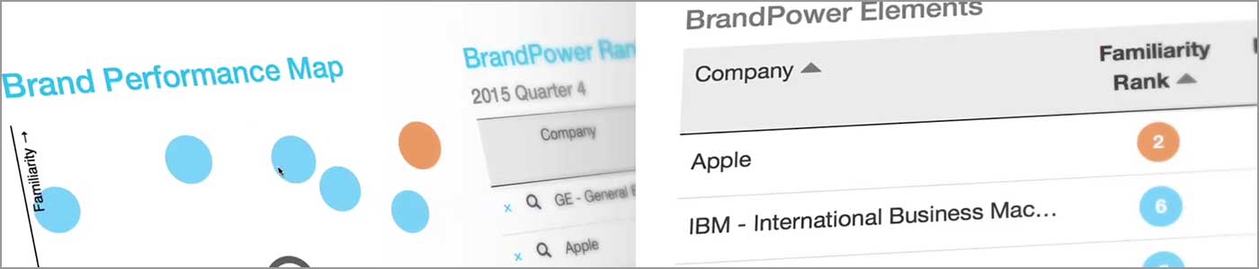 BrandPower also offers a quantitative basis for comparison within a competitive set. That enables companies to complement monetary measures of valuation and ROI by including intangible factors. The result is a more comprehensive and meaningful view of brand performance and how it impacts a company’s market value, stock price and reputation.